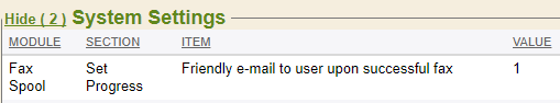 The Friendly e-mail to user upon successful fax system setting is user-specific, meaning the user sending the fax will be the recipient of the system-delivered email notification. Though the Fax Manager is always available for viewing failed and successful faxes, all email notifications send immediately, upon completion or failure.