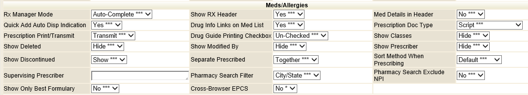 - System Setting E-Chart | Meds | SureScripts Staging must be disabled (value 0) when e-prescribing is live on the production database.