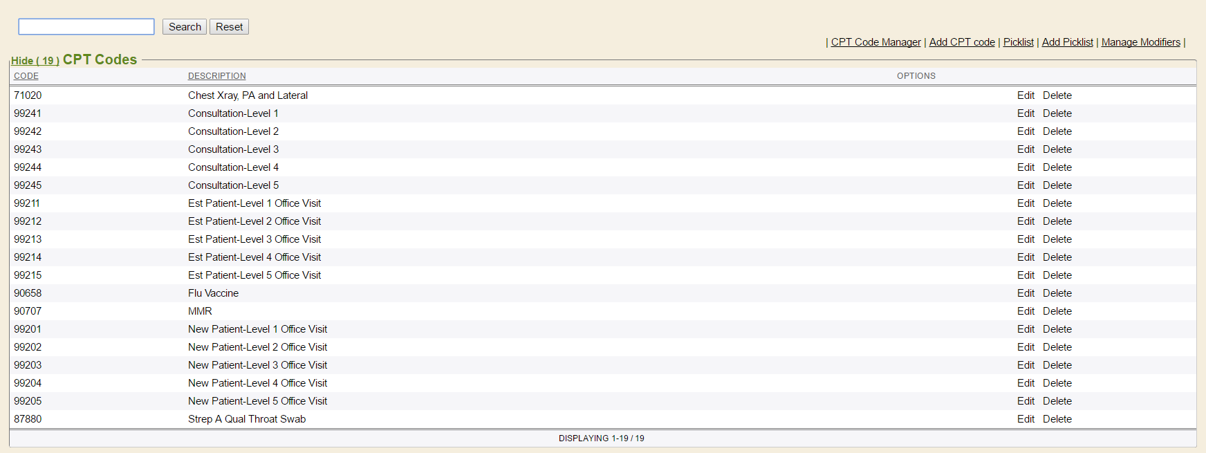 Additional codes may be added to the picklist, anytime. Simply click the Edit link in the Options column, to reopen the picklist and add additional Billing codes.